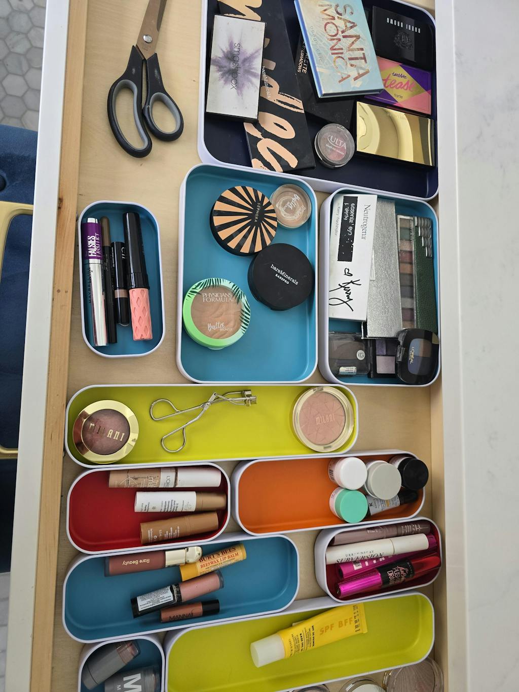 - metal stacking bins: Make your drawers pop with color while organizing small items.