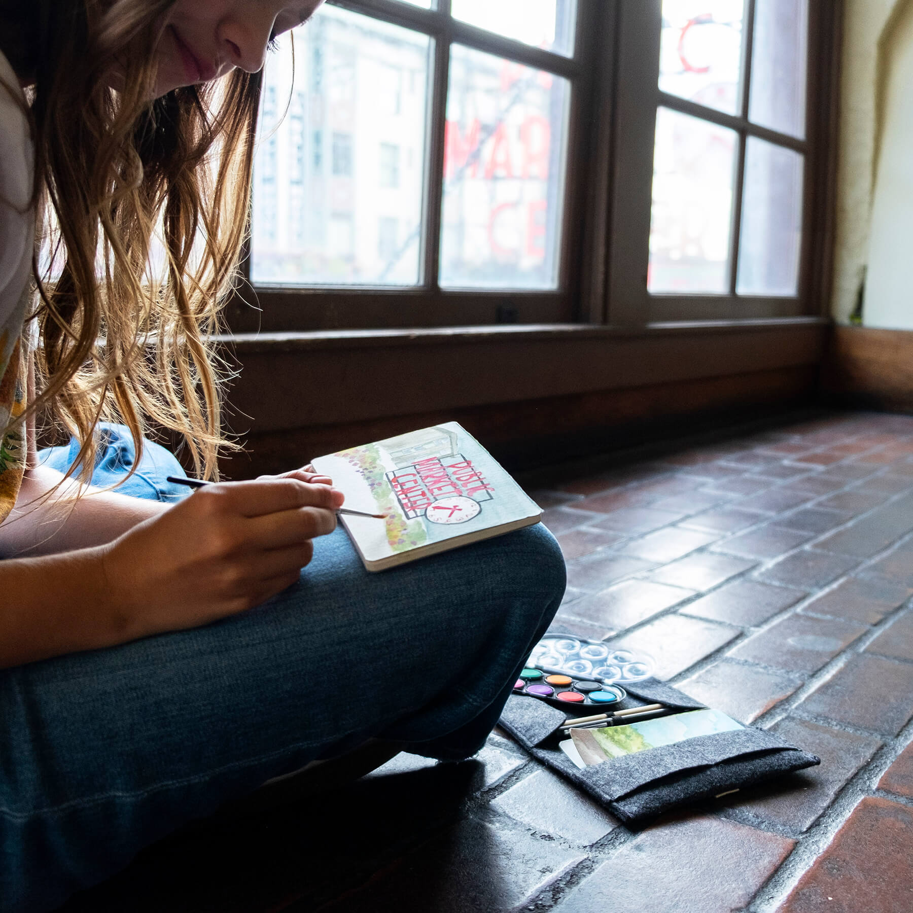 Post your adventures old-school style with our watercolor travel postcard sets. These portable studios, with a 100% recycled case, include everything needed to create a mini masterpiece or sketch out a memory to send to friends and loved ones. A metal snap closure wraps around a trifold charcoal felt pouch to contain contents securely; toss into your backpack and spread out on a mountaintop or lakeside, or while sipping rosé at a Parisian café... wherever inspiration strikes! Travel postcard set also available with watercolor pencils. Designed by Gwen Weinberg.
